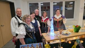 Traditionell eröffnet der Egerländer Volkstanzkreis mit zwei Auftritten das Tanzprogramm. Mit „Rosamunde“, der „Fuchsgraben-Polka“ und dem „Schäin Lustig(h“ zeigten die aus den Gmoin Braunfels, Dillenburg und Herborn kommenden Tänzer gekonnt sehenswerte Beispiele des Volkstanzes. Hier bewährt sich die Zusammenarbeit der drei Gmoin im Volkstanzkreis.